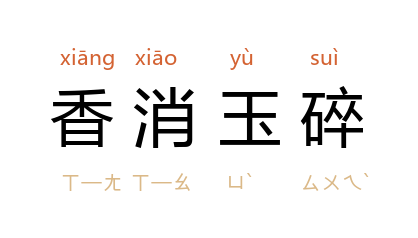 亦作“香消玉损”、“香消玉殞”。 清 缪艮 《沉秀英传》:“秀英 香消玉损,已返 方诸。”
