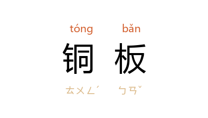 ⒈ 演唱快书等打拍子用的板状器具,多用铜制成。