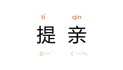 ⒈ 说亲。受男方或女方的委托,而向对方提议婚嫁的事。也作「题亲」。