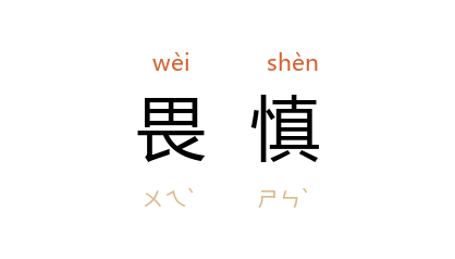 引《东观汉记·樊準传》:“﹝ 準 ﹞明习 汉 家旧事,周密畏慎。”北齐 颜之推 《颜氏家训·教子》:“父母威严而有慈,则子女畏慎而生孝矣。”宋 王禹偁 《求致仕第二表》:“﹝臣﹞虽无功名报国,常以畏慎周身。”清 龙启瑞 《致曾涤笙侍郎书》:“某此事实出於万不获已,寸心可对天地,质鬼神。若世之所谓谨默畏慎者,难免不以为非,要亦不足听从也。”