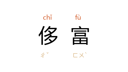 引宋 苏轼 《王仲仪真赞》:“夫所谓世臣者,岂特世禄之人,而巨室者,岂特侈富之家也哉!”明 刘若愚 《酌中志·饮食好尚纪略》:“凡内臣多好花木,于院宇之中,摆设多盆,并养金鱼于缸,罗列小盆细草,以示侈富。”