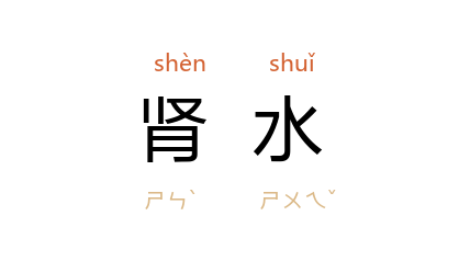 ⒈ 即肾脏。中医以五行之说释五脏,肾属水,故称。中医亦以指肾中所藏的阴精。