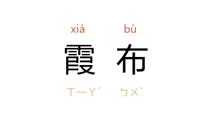 引《文选·郭璞<江赋>》:“集若霞布,散如云豁。”张铣 注:“言羣鸟有文彩而多,集则如霞光之布散。”南朝 梁武帝 《出古育王塔下佛舍利诏》:“士女霞布,冠盖云集。”《宋史·乐志十五》:“霞布 甘泉 仗,簫瑟振和声。”