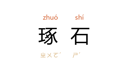 ⒉ 用一尖头工具(如鹤嘴锄)来修琢石头的行为或过程。