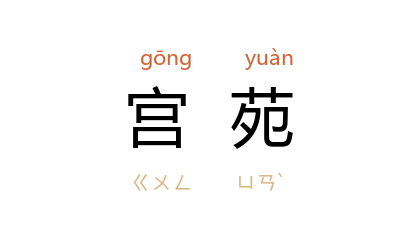⒈ 宫中种植草木,畜养鸟兽,可供游乐的地方。