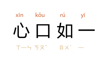 英语lit. heart and mouth as one (idiom); to say what you think, honest and straightforward