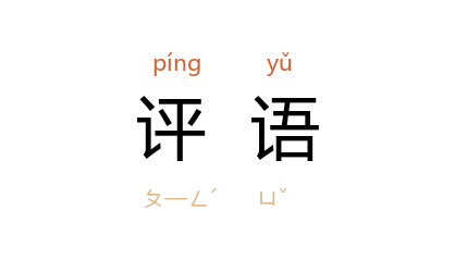 例如:「老师这次给他的评语是『不够用功』。」、「评审对这位体操选手所下的评语是『动作不够流畅』。」