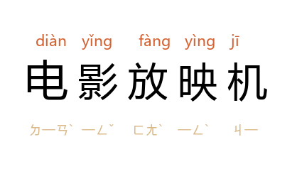 ⒈ 一种放映影片的光学机械装置。它能将电影摄影机摄下的连续的静止画面,用同样的频率投射到银幕上,利用人眼的视觉作用,重新显现运动的人或物。现代电影放映机还有把影片上的音带同步还原的装置。