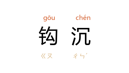 ⒈ 谓搜集与发掘资料、义理等。一些辑佚书常以“鉤沈”为书名,如《五经钩沈》、《古小说钩沉》等。