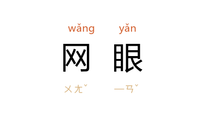 引唐 温庭筠 《罩鱼歌》:“水连网眼白如影,淅沥篷声寒点微。”老舍 《二马》第五段三:“世界是个大网,人人想由网眼儿撞出去,结果全死在网里。”