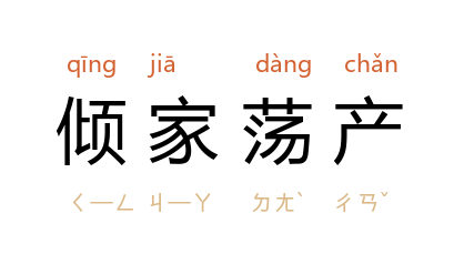《文明小史·第六回》:「后来傅知府又叫地保分赔,少不得卖田典屋,凑了缴上,方才得释,早已是倾家荡产了。」