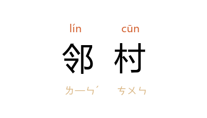 引《南史·孝义传·郭世通》:“邻村大小莫有呼其名者。”鲁迅 《呐喊·阿Q正传》:“听说那邻村的航船 七斤 便着了道儿,弄得不像人样子了。”雁翼 《伙伴》诗:“到邻村,我去拜访一位朋友。”