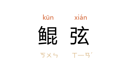 引宋 晏几道 《蝶恋花》词:“却倚鯤絃无别绪,断肠移破 秦 筝柱。”明 顾大典 《青衫记·乐天赏花》:“争奈鯤絃断,鸞镜羞,封书空往倩谁收,似沉浮。”明 王衡 《郁轮袍》第三折:“拨鯤弦,弹商调,乌银甲雨顺风调。”
