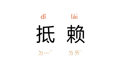 ⒈ 拒绝、不肯承认。元·无名氏也作「抵谰」。