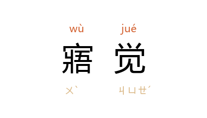 引汉 司马相如 《长门赋》:“惕寤觉而无见兮,魂廷廷若有亡。”清 梁章鉅 《退庵随笔·躬行》:“凡人於五更寤觉时,或悔悟旧事,或料理明日某事某事……盥頮之后,十忘其五矣。故昔人有‘糊涂脸水聪明枕’之谚。”