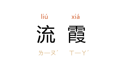 ⒈ 亦作“流瑕”、“流赮”。浮动的彩云。传说中天上神仙的饮料。泛指美酒。