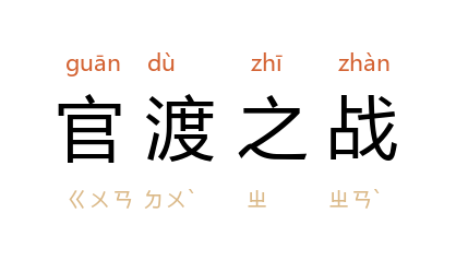 ⒈ 我国历史上以弱胜强的著名战例之一。东汉末年,大小军阀割地称雄,世族豪强袁绍,自恃兵多粮足,于建安四年 (199 年)春天,率兵十余万南下,准备攻打许昌,消灭曹操。曹操以两万左右的兵力在官渡(今河南中牟东北)相拒,乘袁军轻敌,偷袭袁军后方乌巢,焚烧了袁绍的军粮,并乘势全线进攻,歼灭了袁军七万余。官渡之战的胜利,奠定了曹操统一北方的基础。