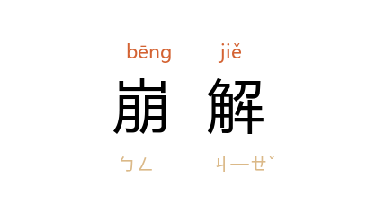 引《大戴礼记·诰志》:“圣人有国,则日月不食,星辰不孛,海不运,河不满溢,川泽不竭,山不崩解。”李大钊 《由经济上解释中国近代思想变动的原因》:“新起的小家族制度……如今因为产业进步、妇女劳动、儿童公育种种关系,崩解的气运将来也必然不远了。”