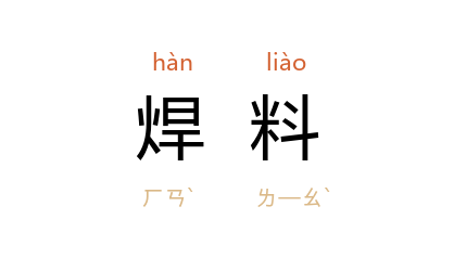 ⒈ 焊接时用来接合金属的材料。有软焊料和硬焊料两种。前者熔点较低,质软,如焊镴、焊锡;后者熔点较高,质硬,如铜和锌的合金。