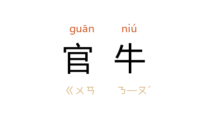 引斐 随行,自以家牛羸困,乃私易官牛,为人所白,被收送狱,夺官。”《晋书·慕容皝载记》:“贫者全无资产,不能自存,各赐牧牛一头。若私有餘力,乐取官牛垦官田者,其依 魏 晋 旧法。”唐 白居易 《官牛》诗:“官牛官牛驾官车, 滻水 岸边般载沙。”