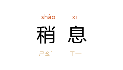 ⒊ 小憩;歇息一会儿。