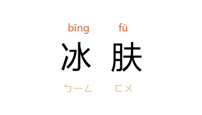 引宋 苏轼 《减字木兰花·赠润守许仲涂》词:“高山白早,莹骨冰肤那解老。从此 南徐,良夜清风月满湖。”《宋史·文苑传二·夏侯嘉正》:“由是渍阳辉,沐芳泽,覩一异人于巖之际,霞为裾,云为袂,冰肤雪肌,金玦玉佩。”金 王若虚 《滹南诗话》卷下:“予尝病近世墨梅二诗,以为过,及观宋诗选…… 曹元象 云:‘忆昔神游 姑射山,梦中栩栩片时还。冰肤不许寻常见,故隐轻云薄雾间。’乃知此弊有自来矣。”