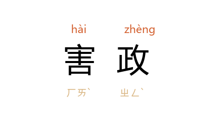 引汉 焦赣 《易林·家人之节》:“害政养贼,背主入愆,跋行不安,国危为患。”《梁书·武帝纪下》:“伤时害政,为蠹已甚。”宋 欧阳修 《上杜中丞论举官书》:“介,一贱士也,用不用当否未足害政,然可惜者,中丞之举动也。”