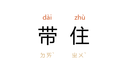 引《水浒传》第二一回:“众人向前,一个带住婆子,三四个拿住 唐牛儿,把他横拖倒拽,直推进 鄆城县 里来。”《水浒传》第三五回:“花荣 便道:‘前面必有强人。’把枪带住,取弓箭来整顿得端正,再插放飞鱼袋内。”
