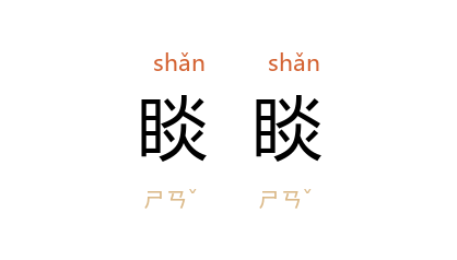 引唐·韩愈〈东方半明〉诗:「残月晖晖,太白睒睒。」唐·段成式《酉阳杂俎·卷八·雷》:「忽暴风雨,有物坠,如玃,两目睒睒。」