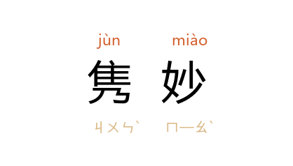 引宋 苏轼 《<黄庭经>赞》:“而画予二人像其后,笔势雋妙,遂为希世之寳。”清 戴名世 《<天籁集>序》:“诗餘莫盛于 元,而 仁甫 所作尤称雋妙,至今流传人间者无多。”郑振铎 《插图本中国文学史》第八章:“结构都很弘丽,内容也极动人,遣辞也很隽妙。”