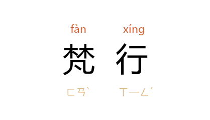 引晋 法显 《佛国记》:“王净修梵行,城内人信敬之情亦篤。”《法苑珠林》卷六一:“彼乱己整,守以慈行,见怒能忍,是为梵行;至诚安徐,口无粗言,不瞋彼所,是为梵行;垂拱无为,不害众生,无所嬈恼,是为梵行。”明 宋濂 《四明佛陇禅寺兴修记》:“良公 通外内典,梵行清白,荐绅之流皆爱敬之。”