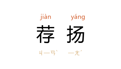 引唐 刘肃 《大唐新语·从善》:“﹝ 郭翰 ﹞次於 寧州,时 狄仁杰 为刺史,风化大行, 翰 纔入境,耆老荐扬之状,已盈於路。”元 冯梦周 《续积善录》:“有此三失,父母兄弟所不喜,君子长者所不与,上官巨人所不肯荐扬,欲立身成名,起家以光其祖宗可乎?”《儒林外史》第七回:“况学生已把你的大名常在当道大老面前荐扬,人人都欲致之门下。”