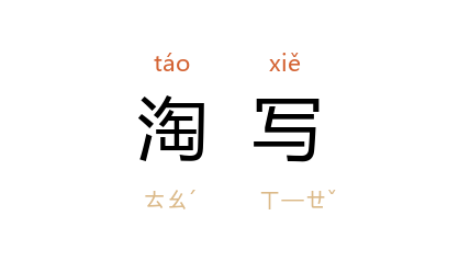 引金 董解元 《西厢记诸宫调》卷一:“对景伤怀,微吟步月,淘写深情。”元 郑光祖 《倩女离魂》第三折:“俺淘写相思,叙问寒温,诉説真实。”元 王实甫 《西厢记》第四本第四折:“别恨离愁,满肺腑,难淘泻。”郭沫若 《反正前后》第一篇:“一肚皮的不高兴,一肚皮的不满足,想借酒来淘泻。”