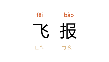 引宋 洪迈 《容斋三笔·李元亮诗启》:“蔡 自到官,即戒津吏门卒,凡士大夫往来,无问官高卑,必飞报,虽布衣亦然。”明 唐顺之 《行巡江御史手本》:“为飞报贼情事。”郭沫若 《黑猫》:“有先行的跑回来飞报,说花轿只离家四五里路了。”