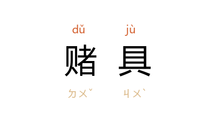 ⒈  专供赌博的用具。如麻将、骰子、扑克牌等。