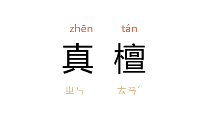 引唐 皮日休 《寄题罗浮轩辕先生所居》诗:“红翠数声瑶室响,真檀一炷石楼深。”宋 洪刍 《香谱·白檀香》:“又有紫真檀,人磨之,以涂风肿,虽不生於中华,而人间遍有之。”