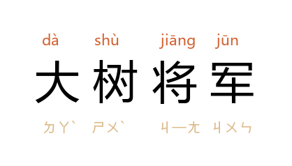 引《后汉书·卷一七·冯异传》:「每所止舍,诸将并坐论功,异常独屏树下,军中号曰『大树将军』。」