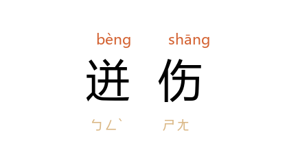 ⒈ 方言。因勉强干重活致使身体受伤。迸,通“屏”。中医指胸胁内伤症,多由举重过度、用力不当或突然动作而致。症见胸闷胀痛,若络脉损裂,则有吐血现象。