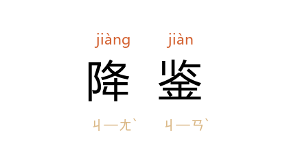 引《诗·王风·黍离》“悠悠苍天” 毛 传:“自上降鉴,则称上天;据远视之苍苍然,则称苍天。”南朝 梁 任昉 《为齐明帝让宣城郡公第一表》:“殞越为期,不敢闻命。亦愿曲留降鉴,即垂顺许。”《宋史·乐志十一》:“神灵降鉴,天地回旋。”