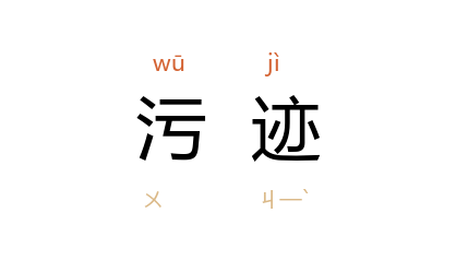 ⒈ 亦作“污蹟”。龌龊的痕迹;污染的痕迹。