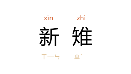 引《文选·扬雄<甘泉赋>》:“平原唐其坛曼兮,列新雉於林薄。”李善 注:“服虔 曰:‘新雉,香草也。’雉、夷声相近,新雉,新夷也。”《汉书·扬雄传上》引此文, 颜师古 注:“新雉即辛夷耳,为树甚大,非香草也。其木枝叶皆芳,一名新矧。”清 梁绍壬 《两般秋雨盦随笔·字音假借》:“辛夷可作新雉。”