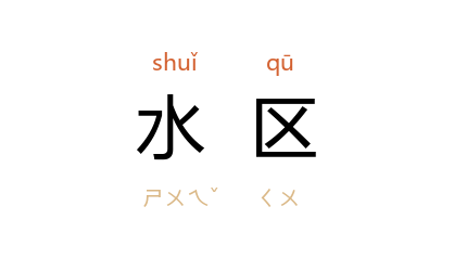引晋 左思 《吴都赋》:“开轩幌,镜水区。”南朝 宋 鲍照 《登庐山》诗:“悬装乱水区,薄旅次山楹。”