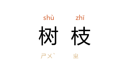 引唐·姚合〈游春〉诗一二首之二:「树枝风掉软,菜甲土浮轻。」《儒林外史·第一回》:「树枝上都像水洗过一番的,尤其绿得可爱。」