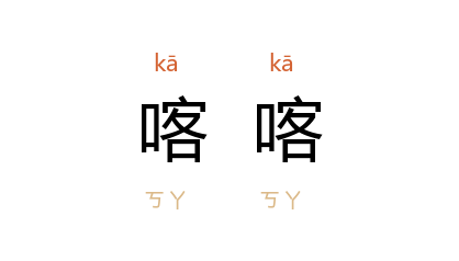 引《列子·说符》:“两手据地而欧之,不出,喀喀然遂伏而死。”南朝 梁 何逊 《七召》:“喀喀死于道边,瞀瞀填于沟壑。”清 袁枚 《新齐谐·折迭仙》:“必取山中至清之水徐徐而吞,使喉中喀喀有响,然后甘味纔出。”