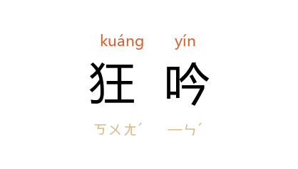 引唐 白居易 《洪州逢熊孺登》诗:“靖安院 里辛夷下,醉笑狂吟气最粗。”宋 辛弃疾 《沁园春·答杨世长》词:“我醉狂吟,君作新声,倚歌和之。”清 方文 《扬州遇邓孝威有作》诗:“日夜相过不厌频,狂吟豪饮任天真。”