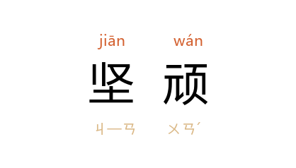 ⒈ 犹顽强坚定。艰难坎坷。犹坚硬。