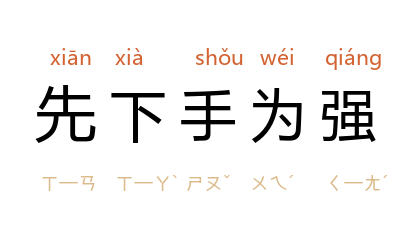 《醒世恒言·卷三〇·李汧公穷邸遇侠客》:「自古道:先下手为强。今若不依我言,事到其间,悔之晚矣!」