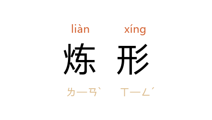引《汉武帝内传》附录:“又夜恒存赤气,从天门入周身内外,在脑中变为火以燔身,身与火同光,如此存之,亦名曰鍊形。”唐 刘得仁 《山中寻道人不遇》诗:“年过弱冠风尘里,常拟随师学鍊形。”清 洪昇 《长生殿·尸解》:“方纔鍊形之时,那锦褥也沾着金浆,故此得了仙气。”