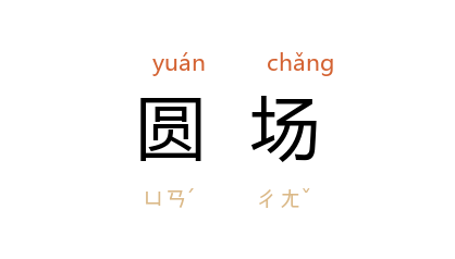 ⒈ 戏剧术语。一种动作程式。剧中人在舞台上按规定环形路线绕行,以表现舞台空间的转换。根据路线的长短和方向,又分为大圆场、小圆场、正圆场、反圆场等。