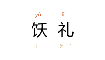 ⒈ 见“飫礼”。亦作“飫礼”。古代天子诸侯为讲军旅、议大事、昭明大节而立着举行的宴礼。